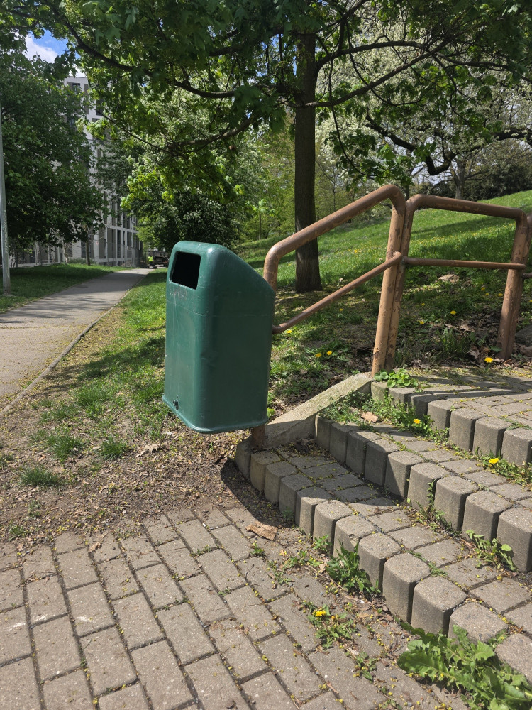 Prosím o zvednutí či přemístění koše , nelze vysypat , otevírá se směrem dolů..