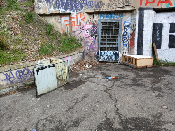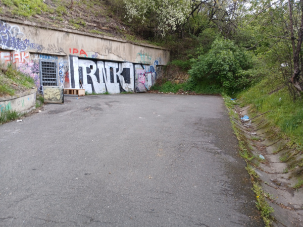 vstup do bunkru pod Vrchem sv. Kříže z Prokopovy ulice - nepradek az vzadu
