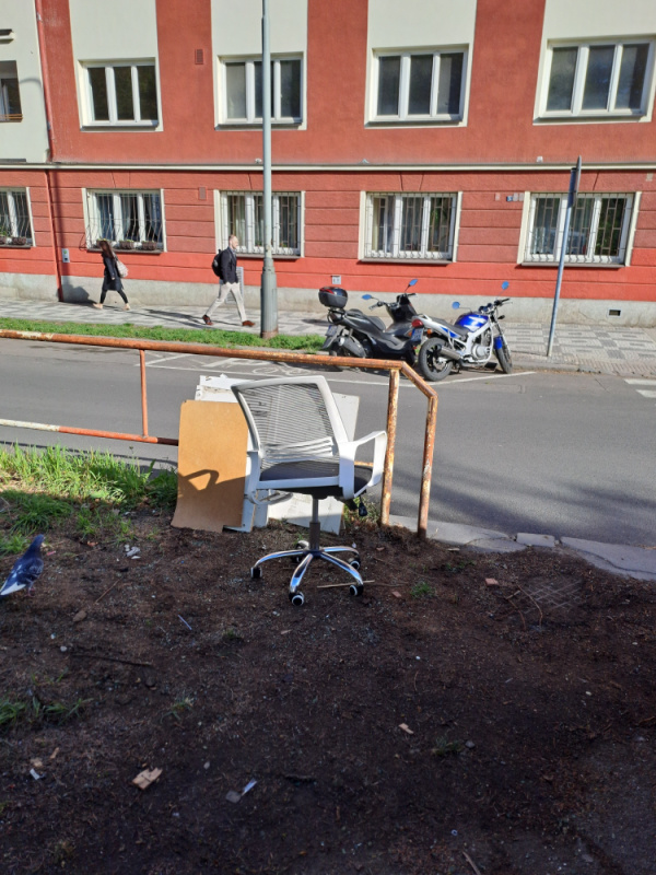 v ulici jeseniova odhozena zidle a rozebrany nabytek.