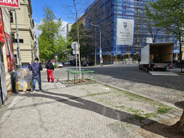 Chybí koše na křižovatce, hlavně před obchodem