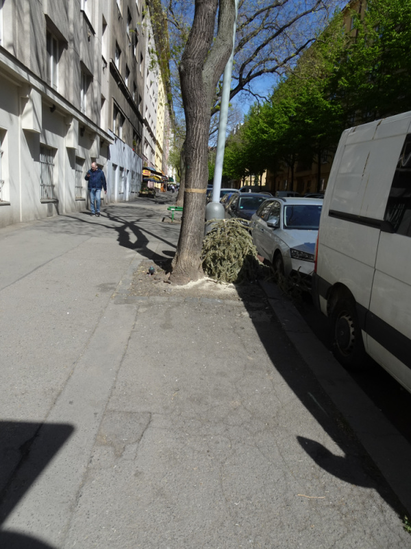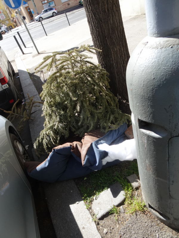 v ulici Biskupcova je u lampy 301720 vyhozen vanocni stromek a hadry.