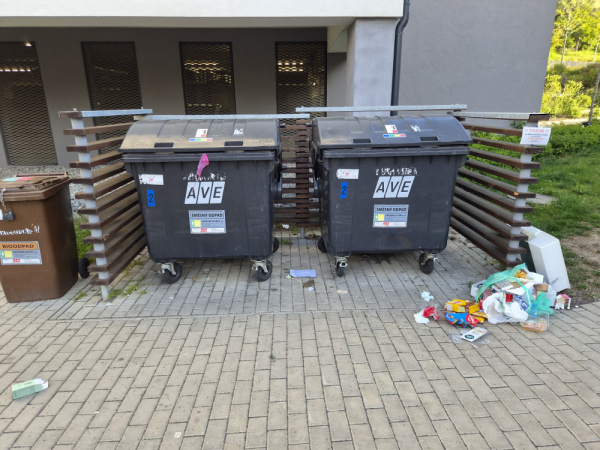 děkujeme za Váš podnět. Pořádek můžeme zajistit pouze na pozemcích ve správě MČ Praha 3. V tomto případě se jedná o soukromý pozemek a pořádek musí zajistit vlastník. Děkujeme za pochopení.
