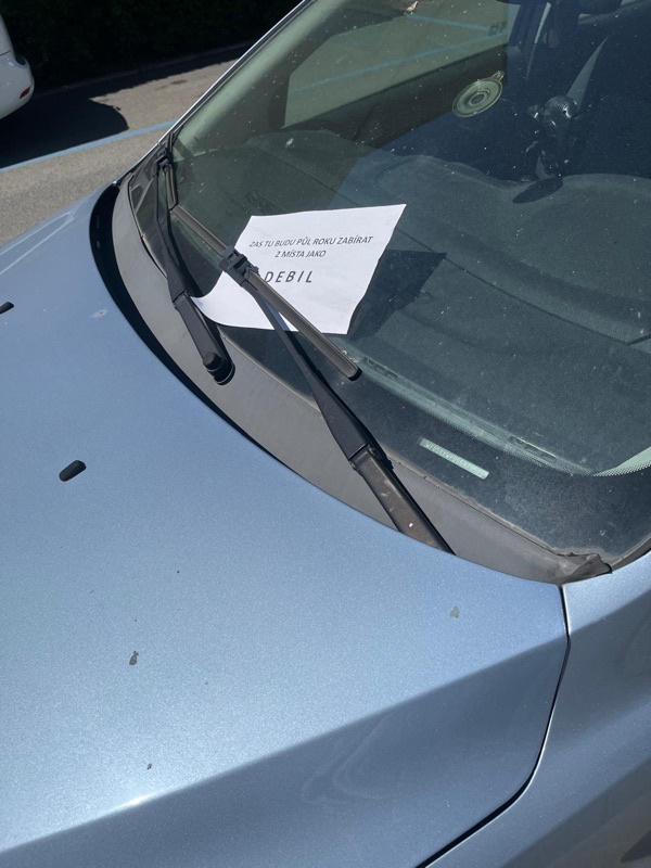 Auto stoji na miste už opravdu dlouho, někdo přidal k tomu i papír za stěrač