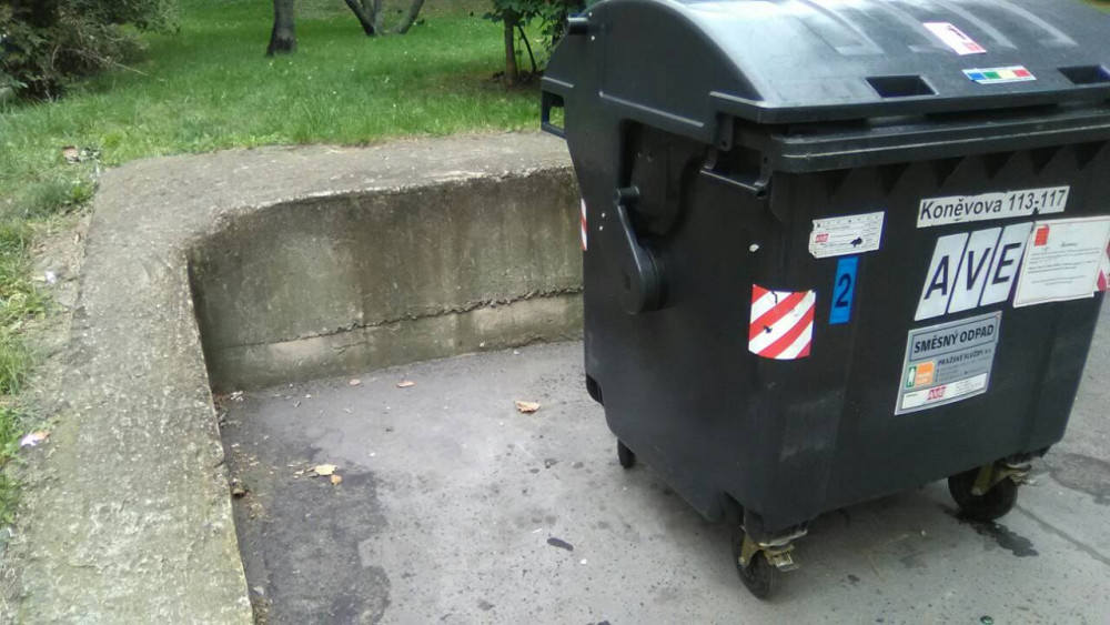 Koberce u kontejnerů.