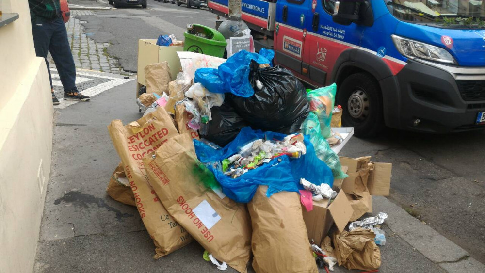 Svoz pytlů a odpadu po Sousedském festivalu.