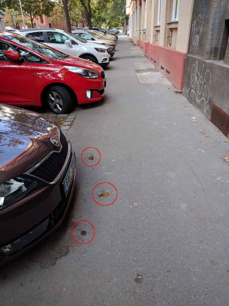 Kaskáda exkrementů na chodníku. Už několik dní. Pravidelný úklid této časti ulice zjevně selhává.