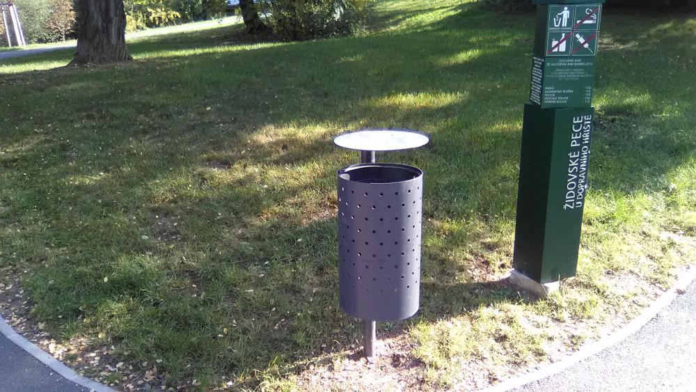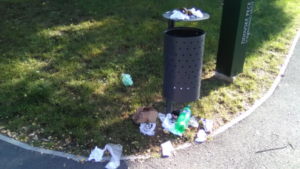 Nepořádek okolo koše.