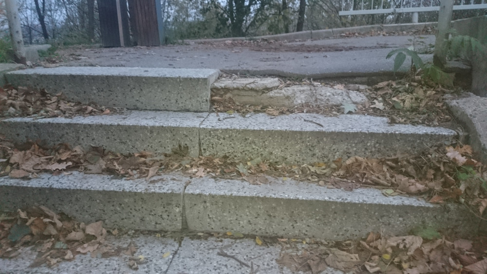 Lávka pro pěší Ohrada směr Vitkov-chybi schodišťový stupeň