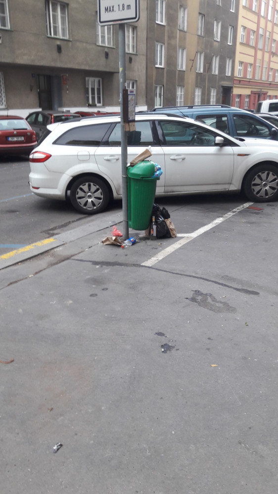 - a nakonec koš na rohu Biskupcova a Jana Želivského je obložen odpadky. Ty Pražské služby nechávají na místě a neuklízí.