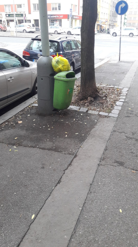 Žlutá taška s odpadky je na místě již několik dní, je to na rohu ulic Biskupcova x Jana Želivského. Děkuji.