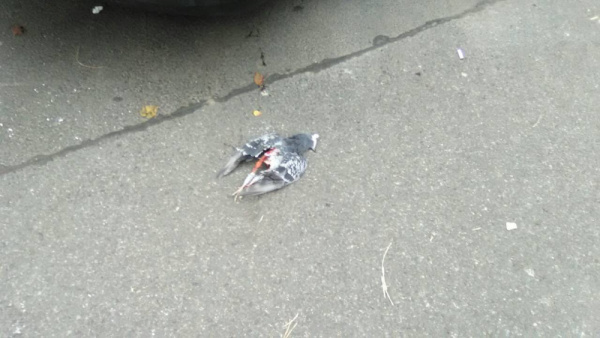 Na silnici před Zabkou v kourimske leží mrtvý holub