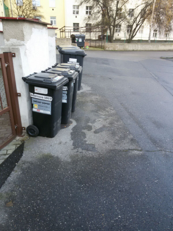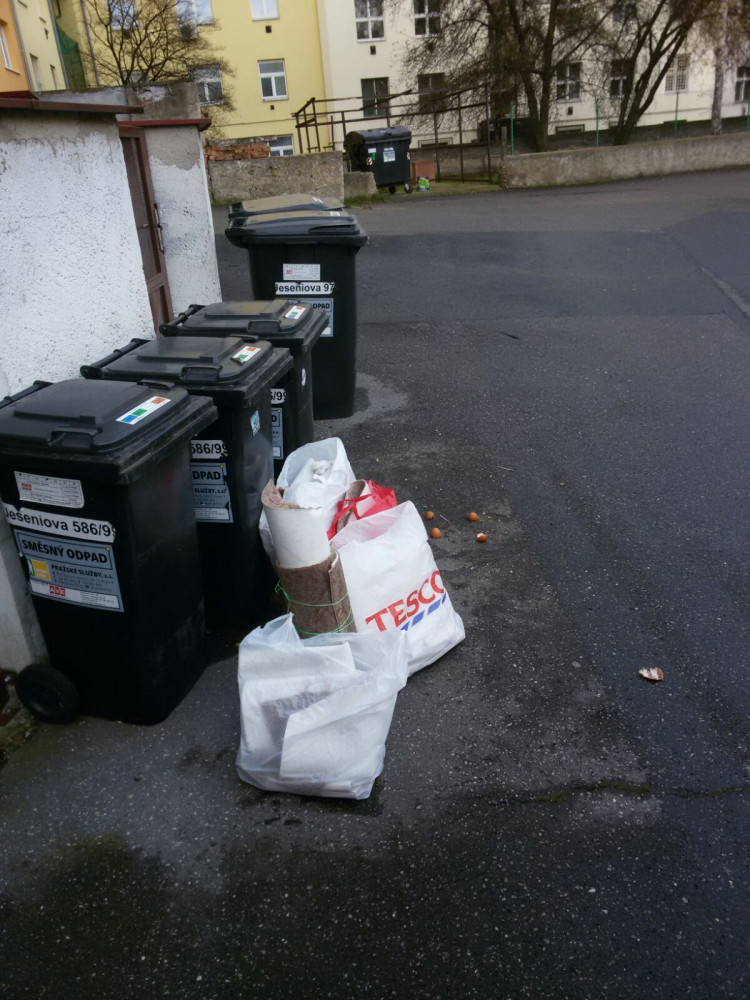Pytle s odpadky mimo popelnice.