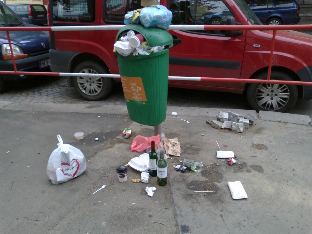 Odpadky - viz foto. P.S. Důvod: Nejsou vhodné odpadkové koše.