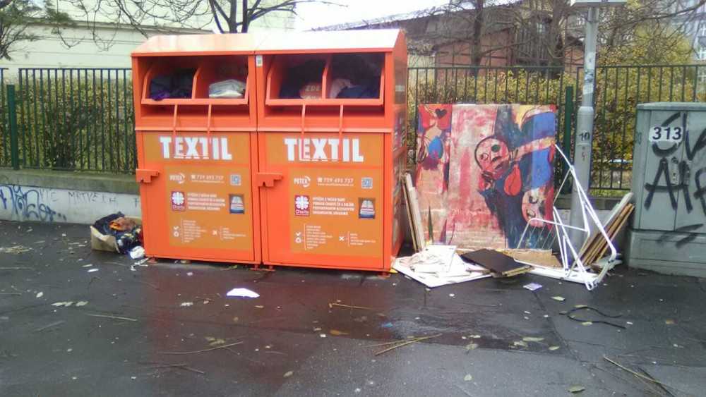 Nepořádek u kontejneru