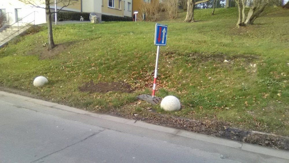 Značka o střídavé jízdě, kterou zde zanechali stavbaři při rekonstrukci plynovodu