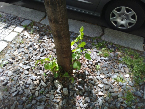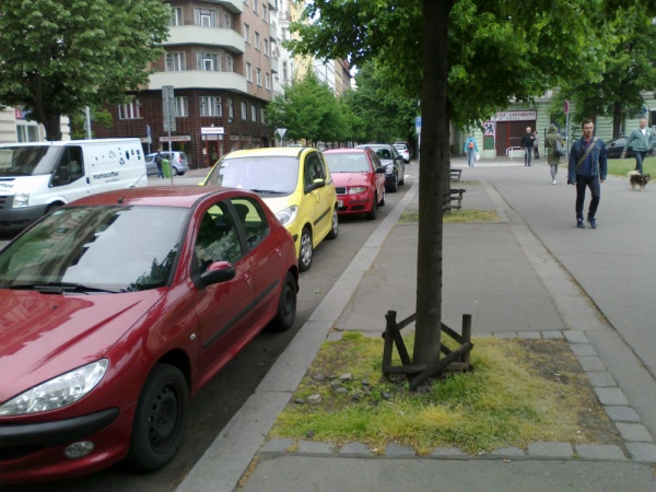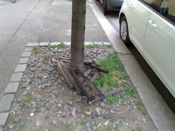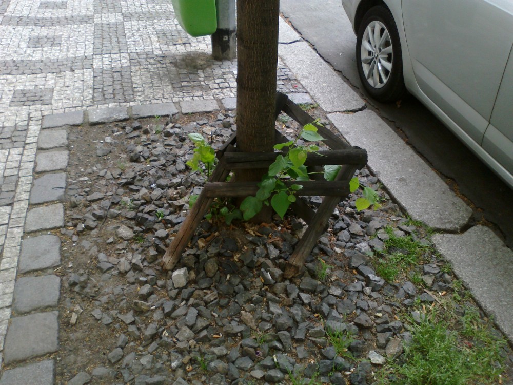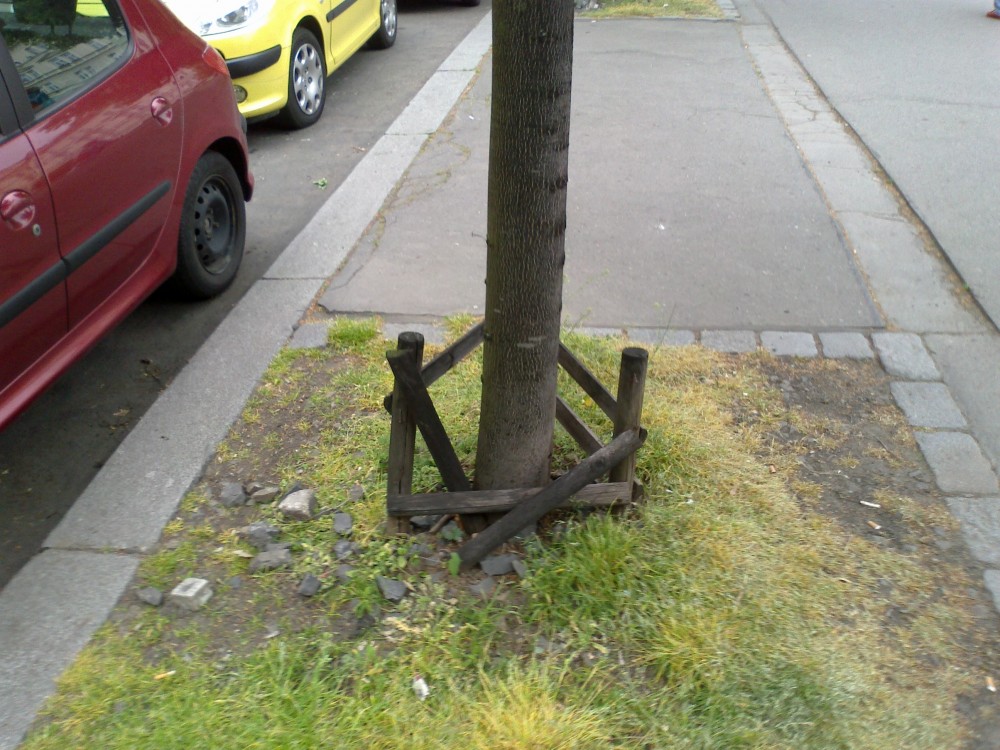 Poškozené/zbytečné hrazení kolem stromů - viz foto.