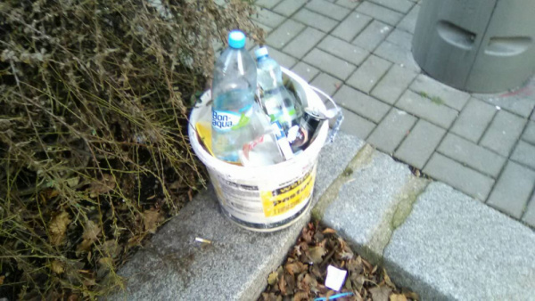 Odpadky na chodníku.