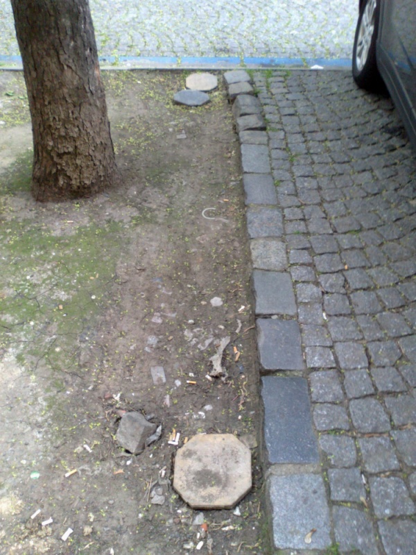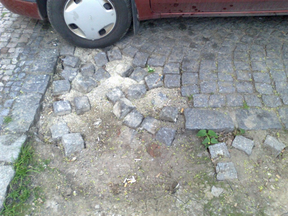 Rozbitá dlažba, pohozené dlaždice ... viz foto. Mám ráda čistou Prahu 3, nejen.