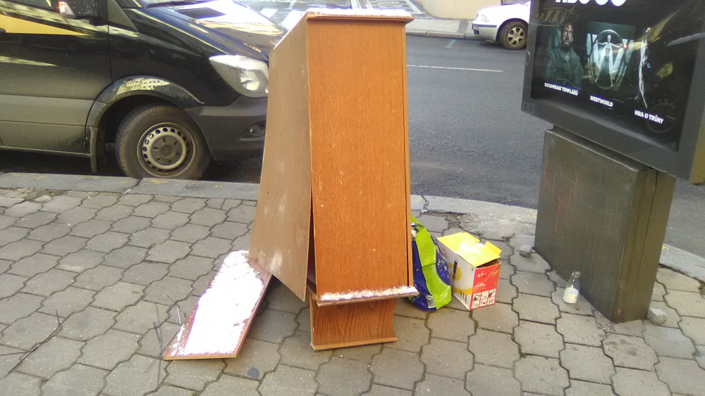 Odložená skříň a nepořádek.