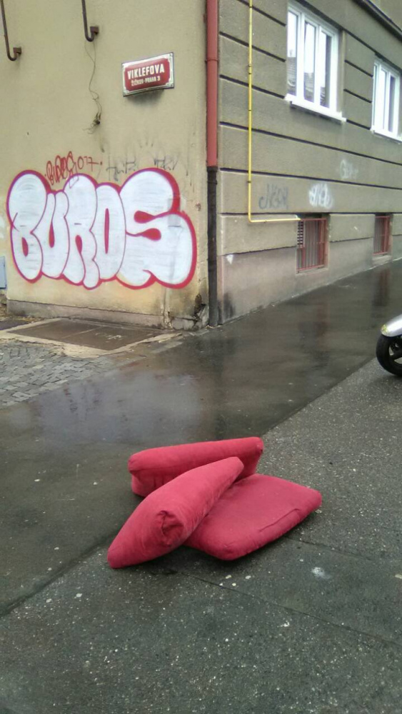 Odložené polštáře ze sedačky.
