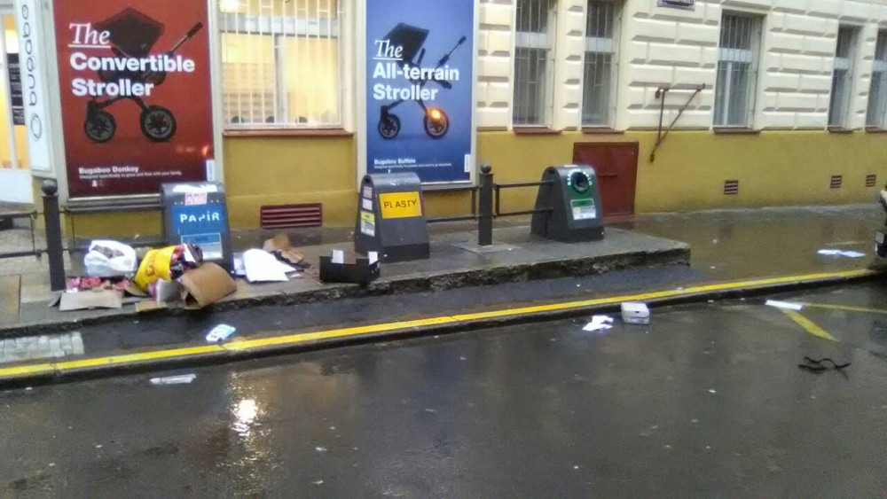 Rozfoukané odpadky.