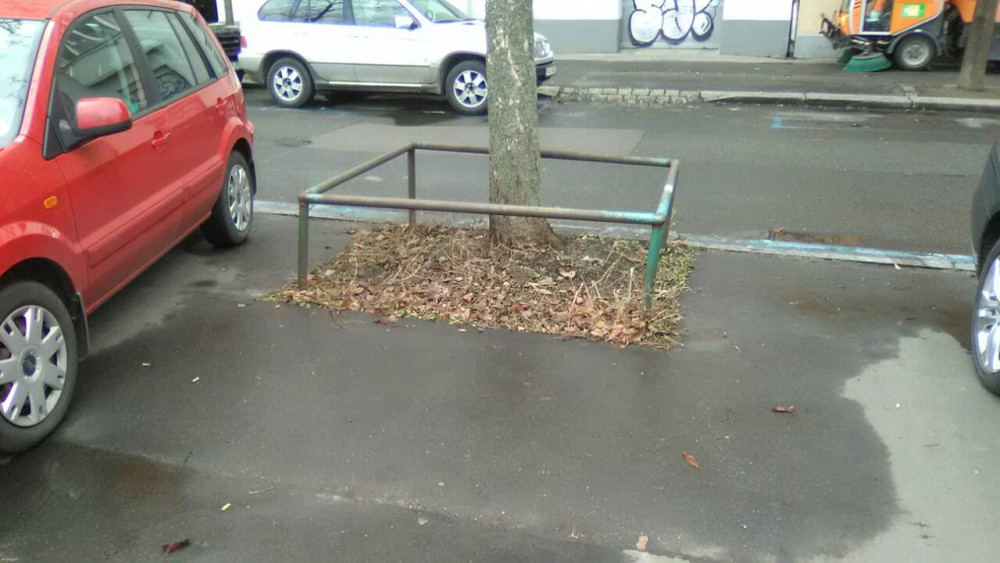 Nepořádek kolem stromů. Tři stromy vedle sebe.