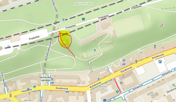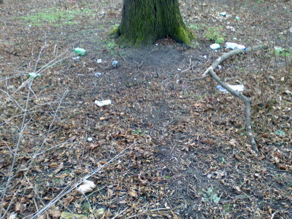 Odpadky v parku Vítkov, jižní stráň: přesné místo viz foto a výstřižek mapy.