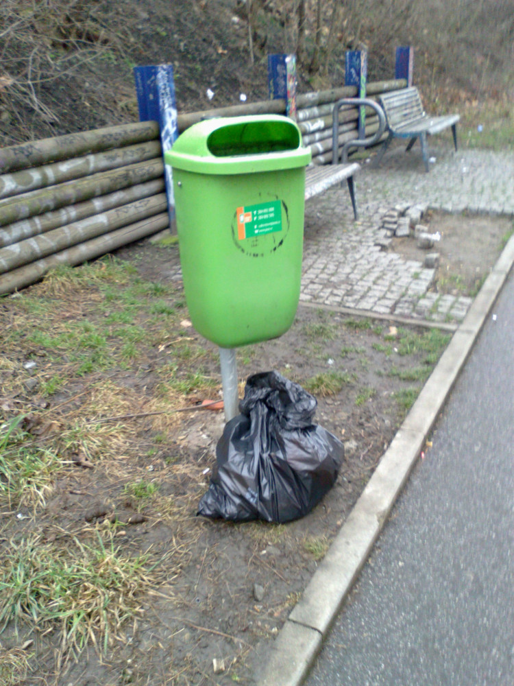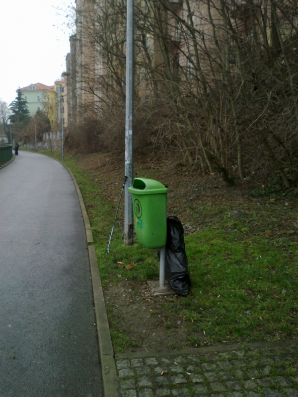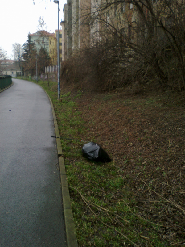 Praha 3, Vítkov: prosím o odvoz pytlů s odpadky. Je jich zhruba 8 podél cyklostezky od ul. Seifertova k ulici Pod Vítkovem: viz mapka. ČD se pochlapily, bylo uklizeno. Děkuji panu Pospíšilovi z Regionální správy majetku. My jsme jen douklidili.