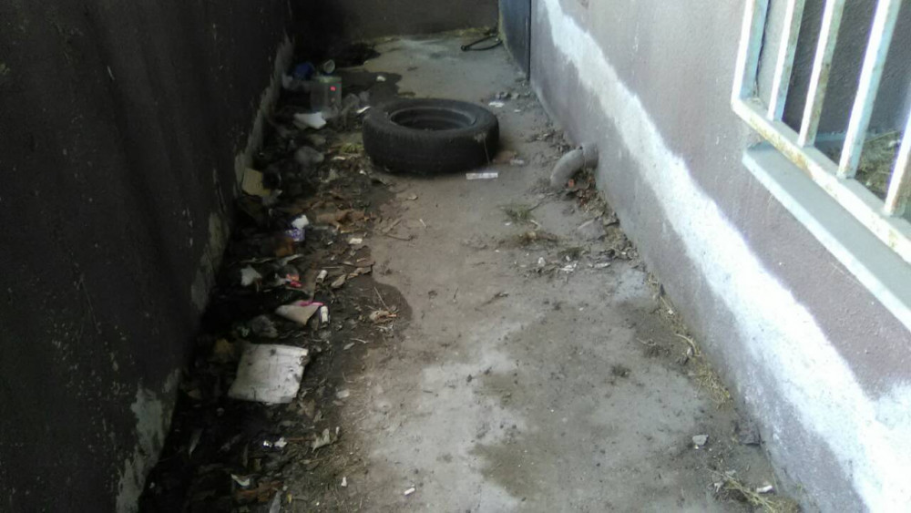 tento nepořádek pod schodištěm a okolo něj se neustále opakuje a nikdo to neuklízí (nutný pravidelný úklid) Děkuji