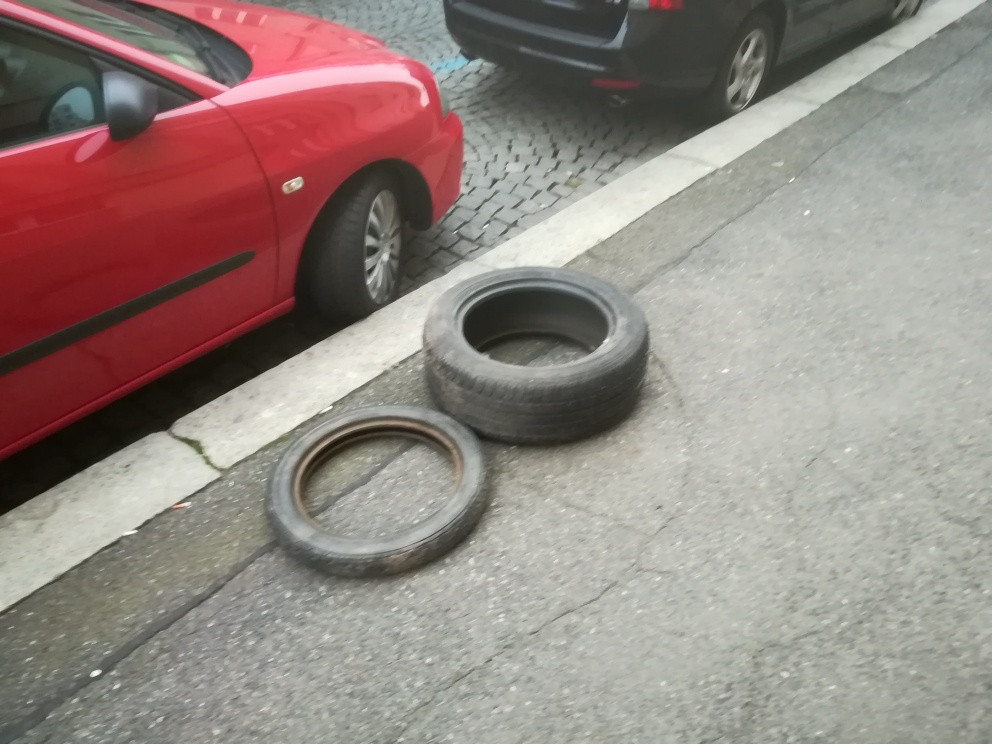 Dobrý den, děkujeme za Váš podnět. Pneumatiky jsme uklidili. Radek, Čistá Trojka