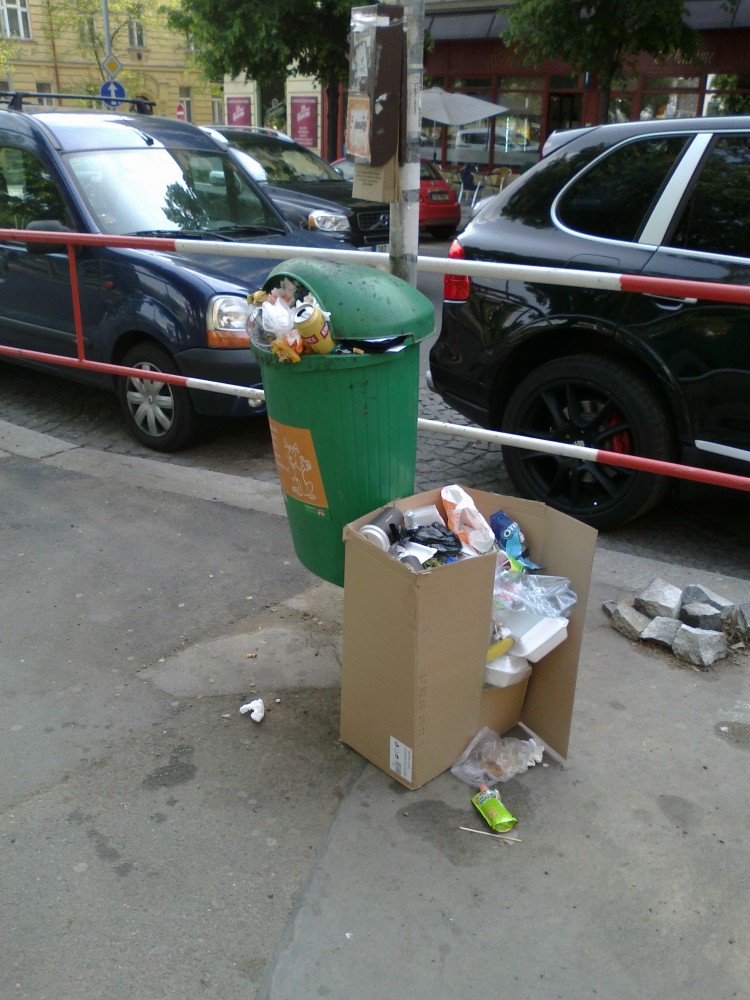 Přebytek odpadků, nevhodná sběrná nádoba.