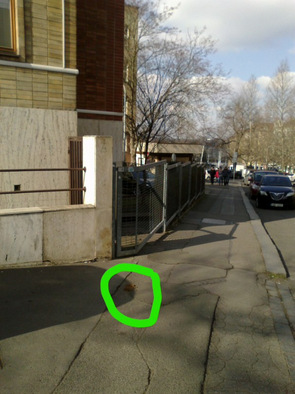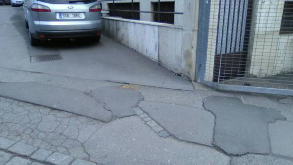 Rozšlápnutý psí exkrement: U Rajské zahrady, chodník vpravo při vjezdu do COOP.