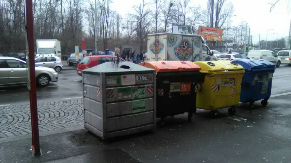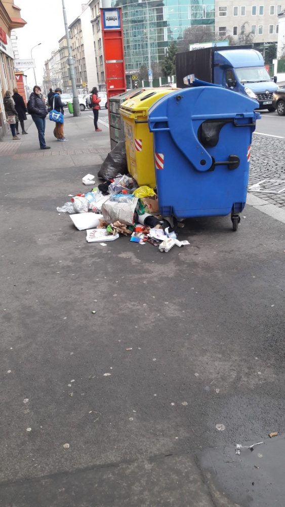 Odpadky kolem kontejnerů před Tescem. Každý týden stejné bohužel.