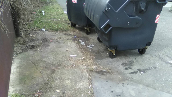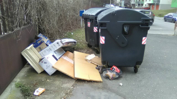 Nepořádek kolem kontejnerů. Děkuji předem za úklid.