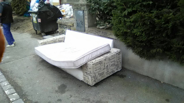 Sedačka na chodníku.