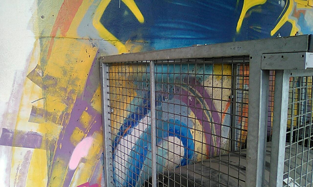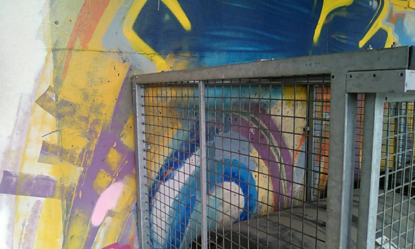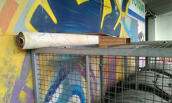U klece odpadky a koberec.
