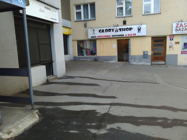 Velké pomočení kolem telefonní budky Olšanské n 5.