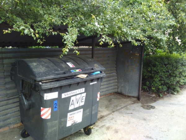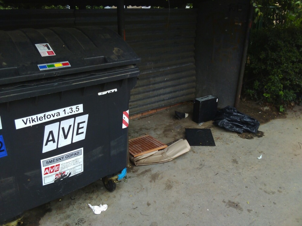 Nepořádek u kontejnerů.