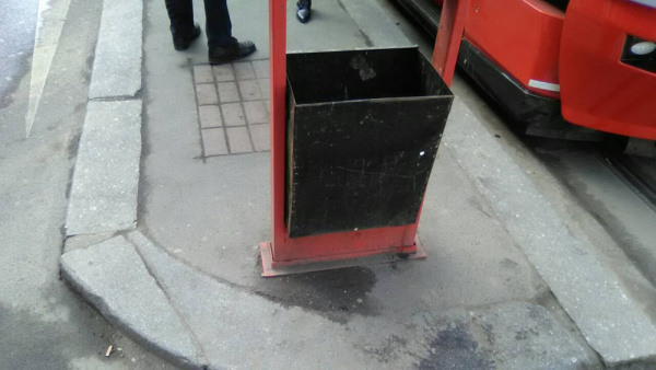 Zřejmě stříkačka vedle zastávky Olsanske náměstí směrem do centra. Na silnici, blízko sloupu s jízdními řády.
