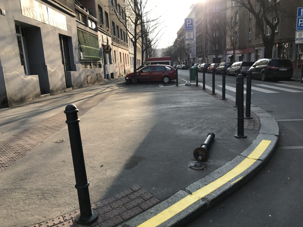 Uražený sloupek, valí se to tam už týden, děkuji za nápravu PP