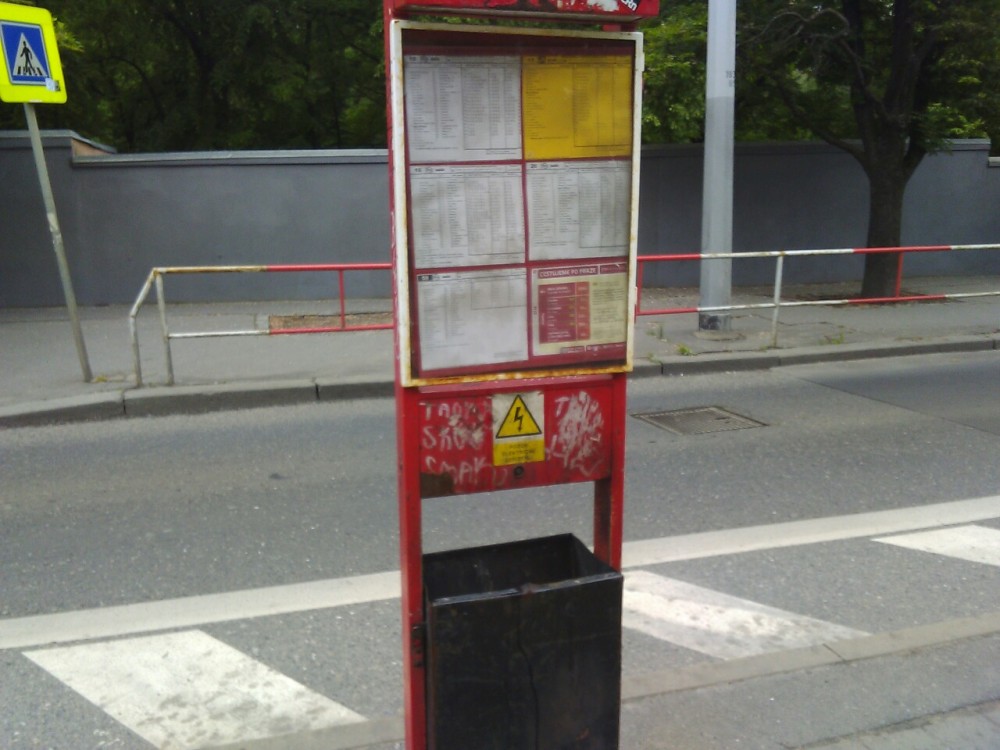 Na tabuli s jizdnimi rady na zastavce Mezi hrbitovy nekdo umistil ...