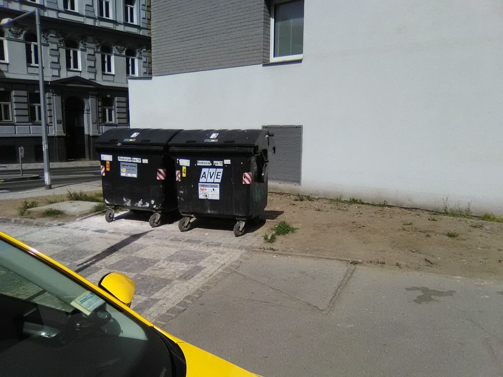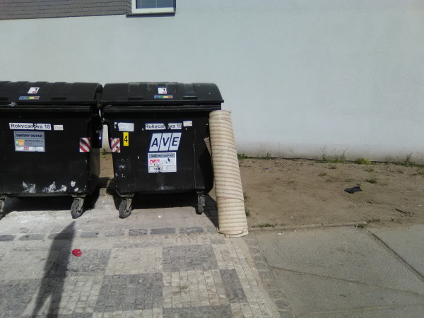 Koberec vedle kontejnerů.