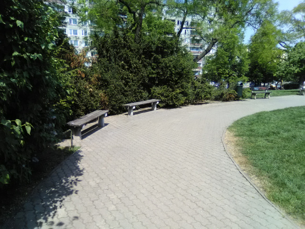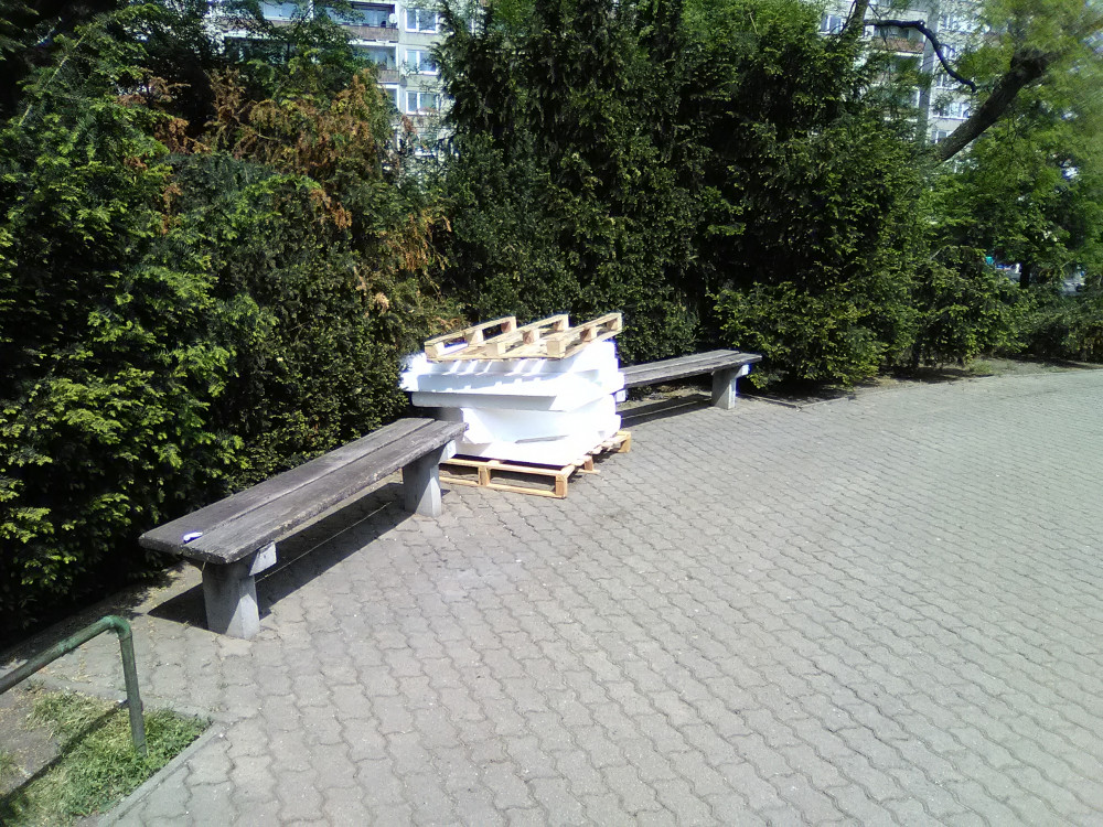 Palety, polystyren v parku.