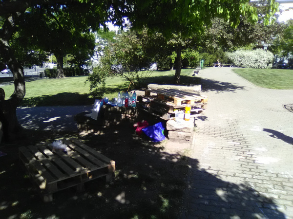 Uklizeno Čistou Trojkou. Petky na obr. patří dětem, které si na paletách hráli.