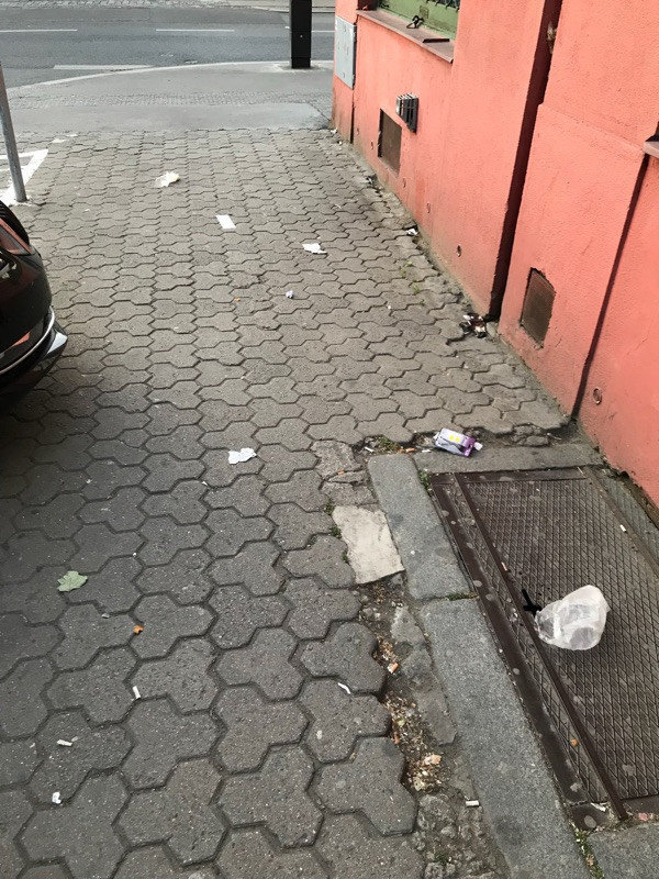 Ulice Rečkova neuklizena, plná výkalů a exkrementů