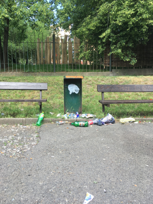 Chybějící koš v parku u ZŠ Chmelnice