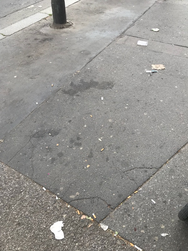 Dobrý den. Děkujeme za podnět. Při dnešní kontrole bylo poklizeno. Ohledně skvrn na chodníku jsme již dříve psali, ze nejsme schopni globálně řešit podobné problémy. S pozdravem, František, Čistá Trojka