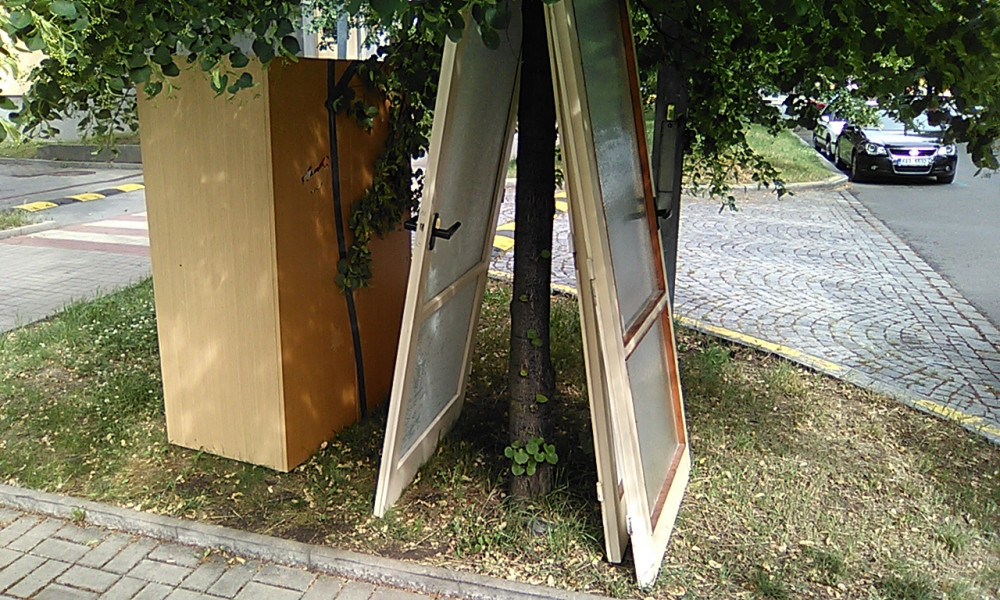 Staré dveře a skříň.