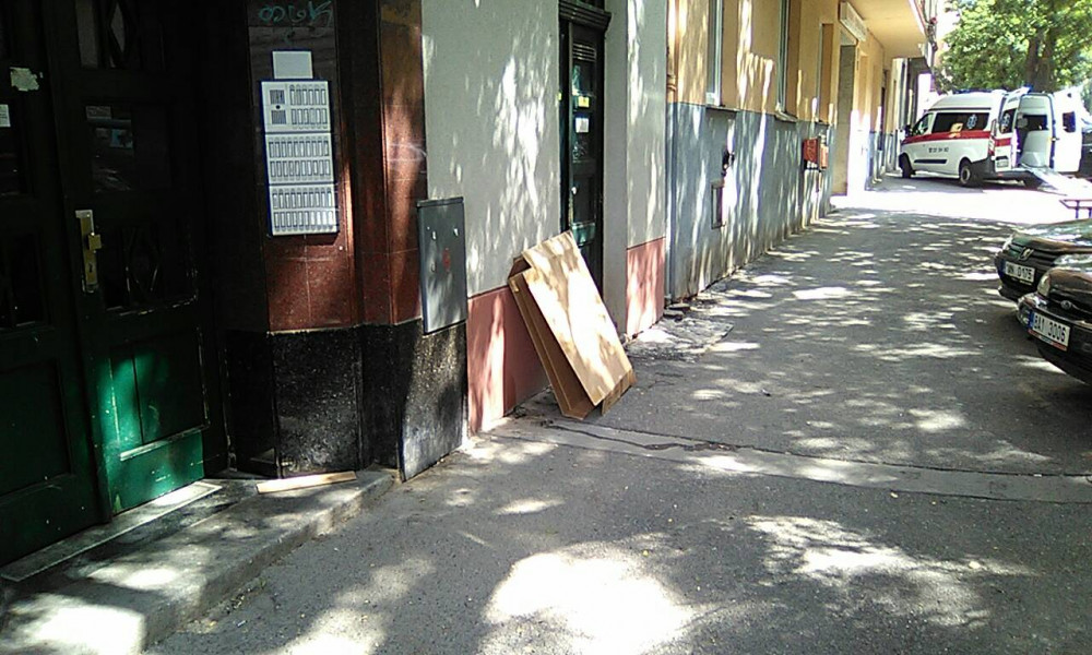 Odpadky na chodníku.