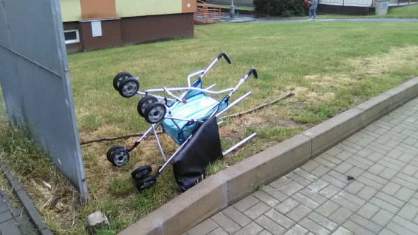 Židle a kočárek.